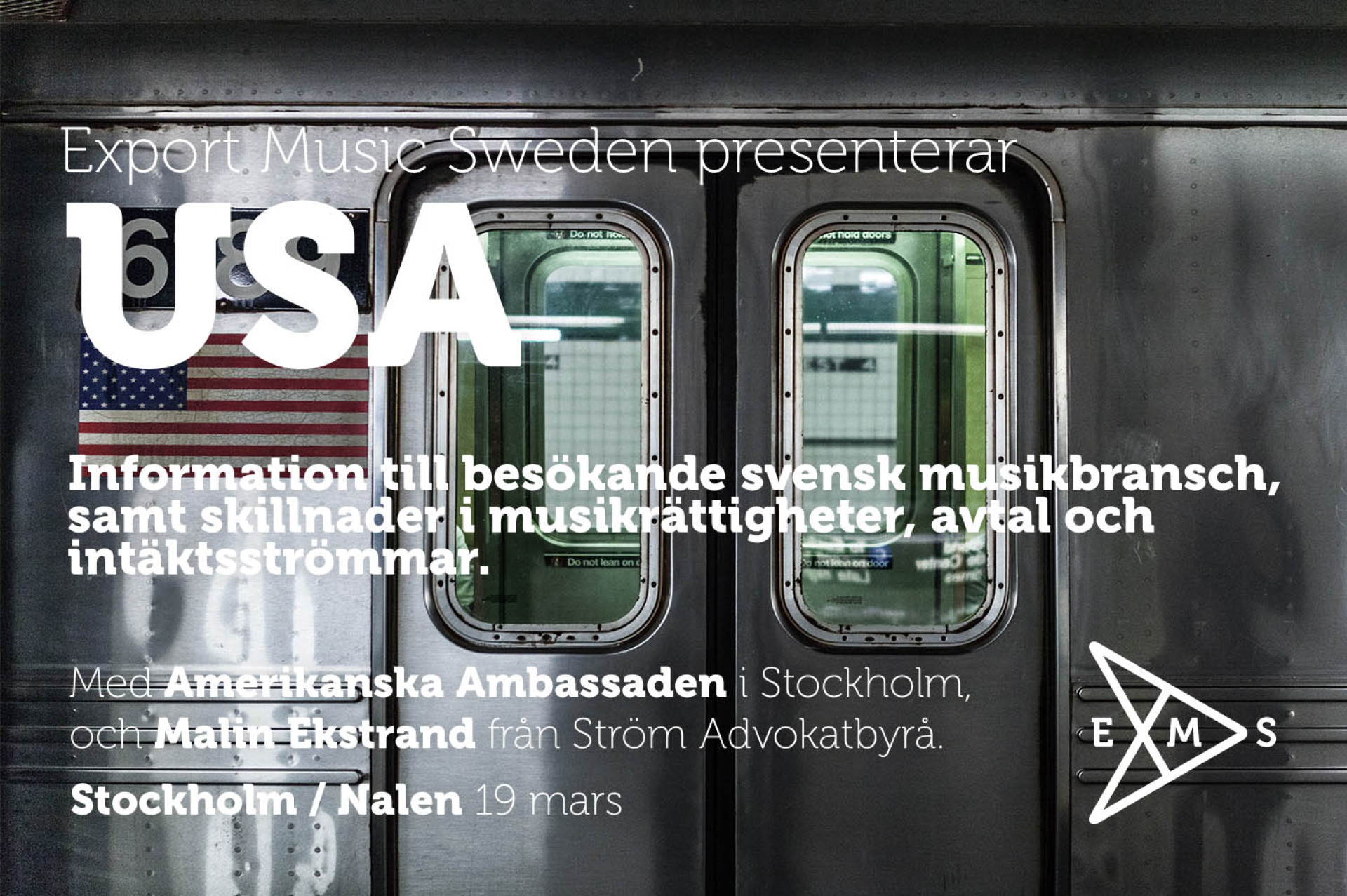 Vi har bjudit in både svenska och amerikanska talare som kommer att gå igenom sitt expertområde med oss. Vi börjar dagen med en presentation av Rachel VanJohnson, Vice Consul - U.S. Embassy Stockholm, som kommer tala om information för besökande svensk musikbransch till USA, till exempel visumhantering och andra arbetstillstånd. Sedan följer Malin Ekstrand från Ström Advokatbyrå, som kommer att tala om skillnader i musikrättigheter, avtal och intäktsströmmar.